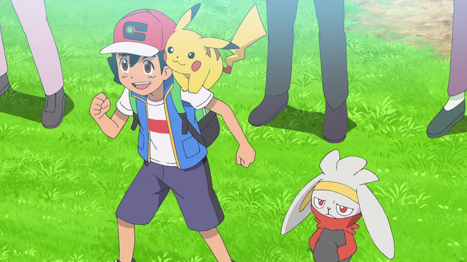 Once they get off the train, Ash and Goh set out on the hunt for Dynamax Pokémon. Meanwhile, a Scorbunny is hot on their trail.