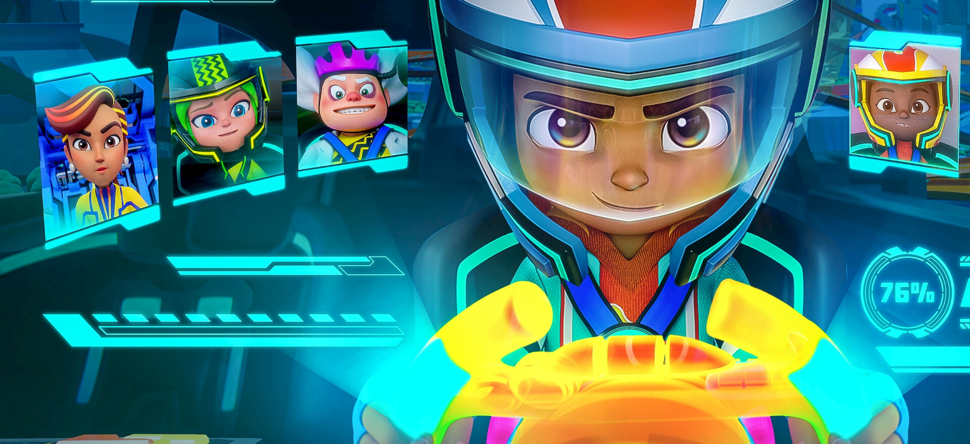 Mac and his friends drive Glow Racers when the lights go out in Hot Wheels City. The campers team up for a scavenger hunt challenge.