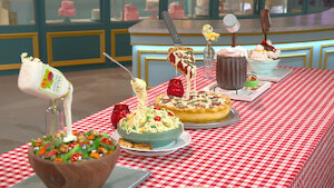 The contestants add advanced techniques to their skill sets with 3D frosted roller skates and amazing anti-gravity bakes. Guest judge: Casey Wilson.