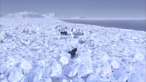 Hoping for a miracle, Kuramochi heads for Antarctica on the Soya. Meanwhile, a snowstorm separates a weakened Riki from the other two dogs.
