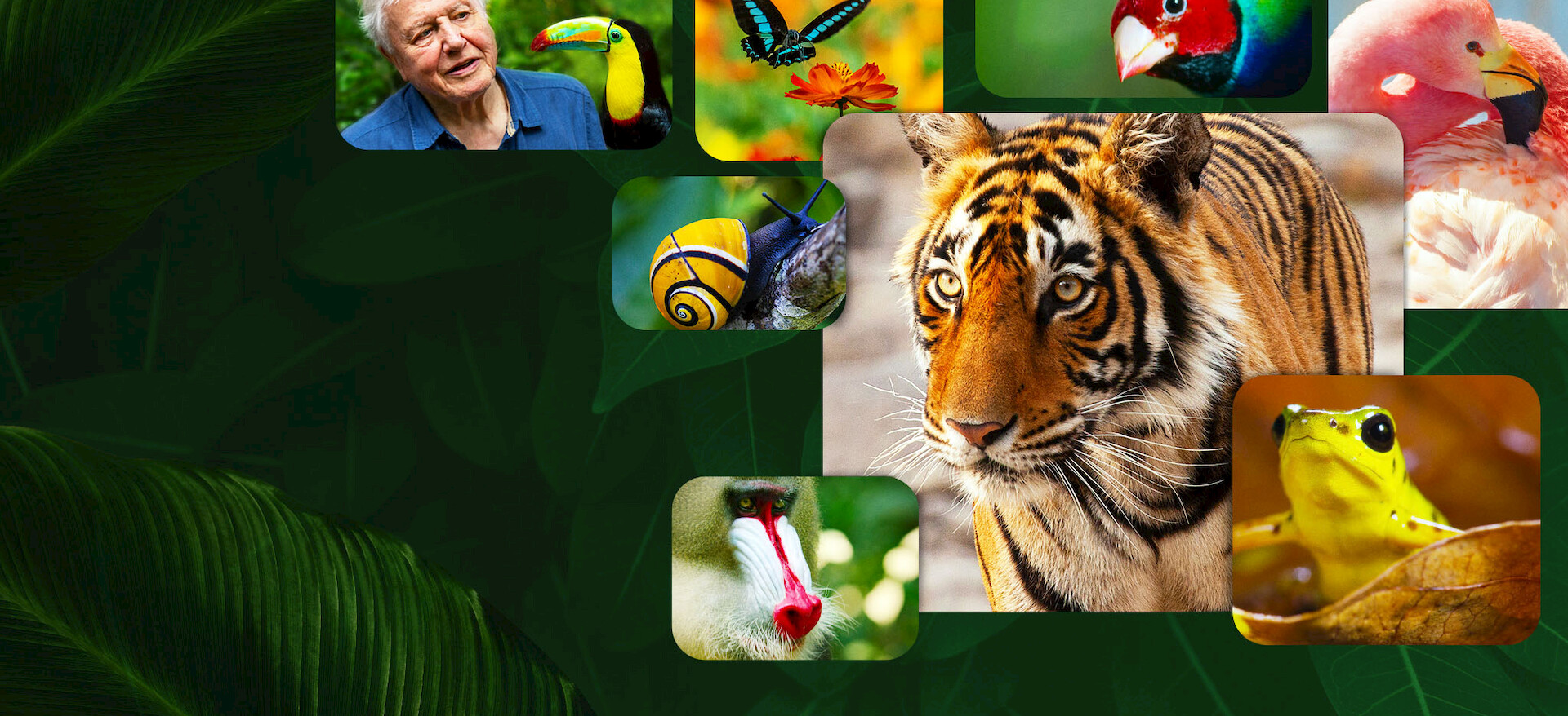 Un mandril alardea de sus colores mientras y aves y mariposas ofrecen un espectáculo deslumbrante. Un camarón mantis lanza un derechazo, y ranas rojas dan la batalla.