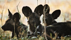 En la llanura que rodea el río Zambezi, una cachorra de perro salvaje aprende a trabajar en equipo con su manada para alimentarse y mantenerse a salvo de las hienas.