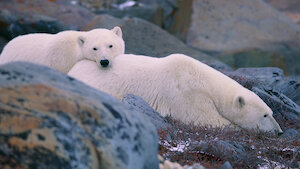 Los osos polares deben enfrentar los cambios estacionales de la helada y el deshielo en la bahía de Hudson, Canadá, y algunos se vuelven creativos a la hora de conseguir comida.