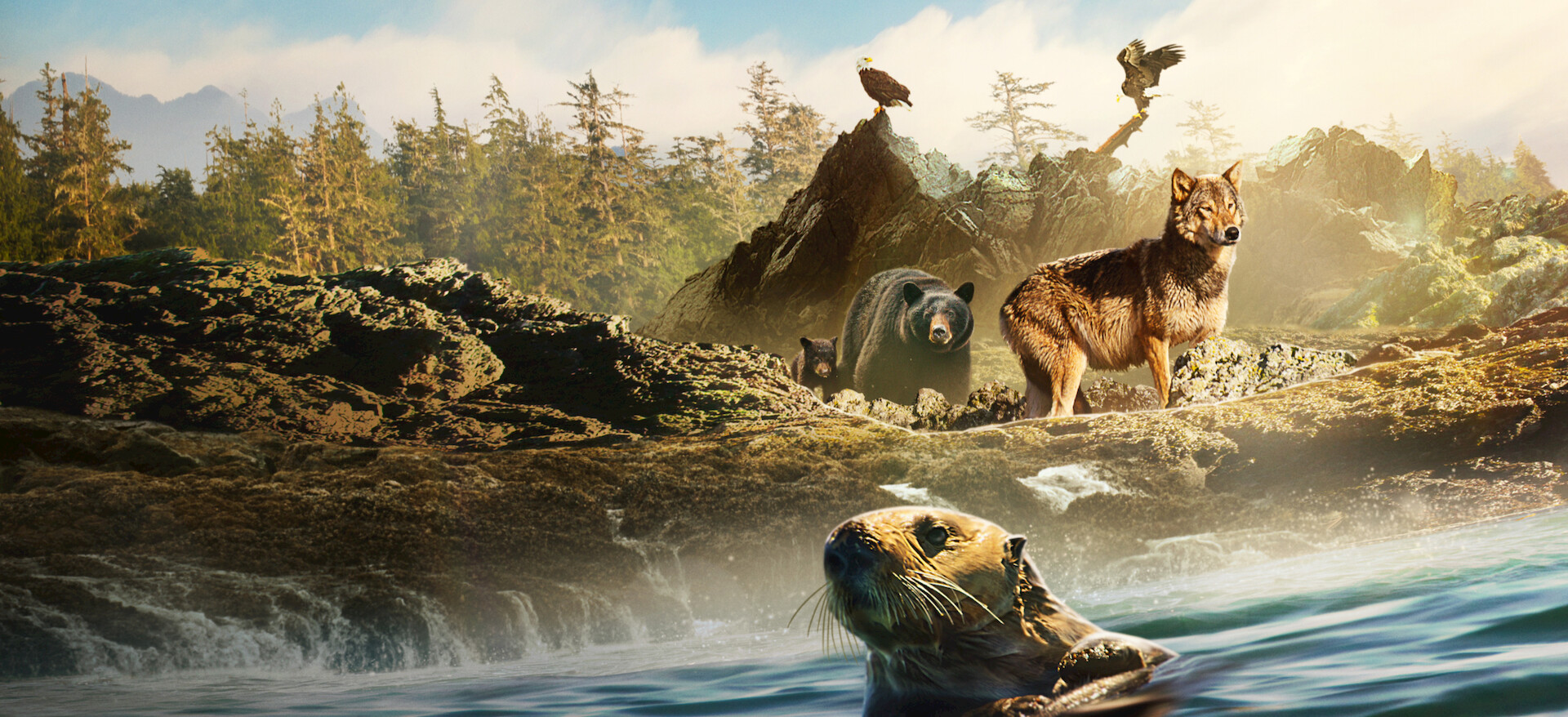Esta es la salvaje isla de Vancouver, un lugar donde el océano los alimenta a todos: desde las águilas calvas que pescan en el mar hasta los lobos que nadan en sus gélidas aguas...